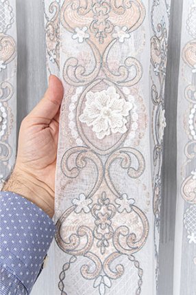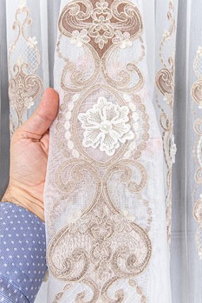 Hürrem İncili Ekru Kort Tül Perde