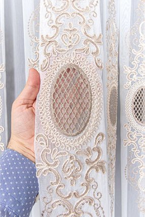 Mihrimah Ekru Bohreli Kort Tül Perde