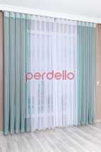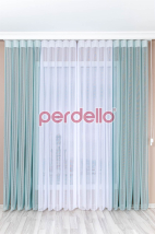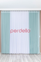 Ürünleri satın alırken ebat belirtmeniz gerekiyor. 30 cm en ve boy minimum ölçüdür. Ende en fazla 600 cm, boyda da en fazla 300 cm ebatlarında üretim yapıyoruz. Perde mekanizması tül ve güneşliği aynı yerde barındırıyor. Ortadan ayrılan mekanizmayı isterseniz sağa ya da sola olarak ayarlatabiliyorsunuz. Montaj aparatlarını da ürün ile birlikte gönderiyoruz. Ürünümüzün mint yeşili olan bölümü güneşliktir ve sağda ve solda yer alır. Beyaz olan bölüm ise tüldür. O da tam ortadadır. Fon kadar kalın bir güneşlik değildir. Kolayca sökülür ve takılır. Makinede 30 derecede yıkanabilir. Ürünümüzün 35 farklı renk seçeneği vardır. Aralarından uygun olanını seçebilirsiniz.